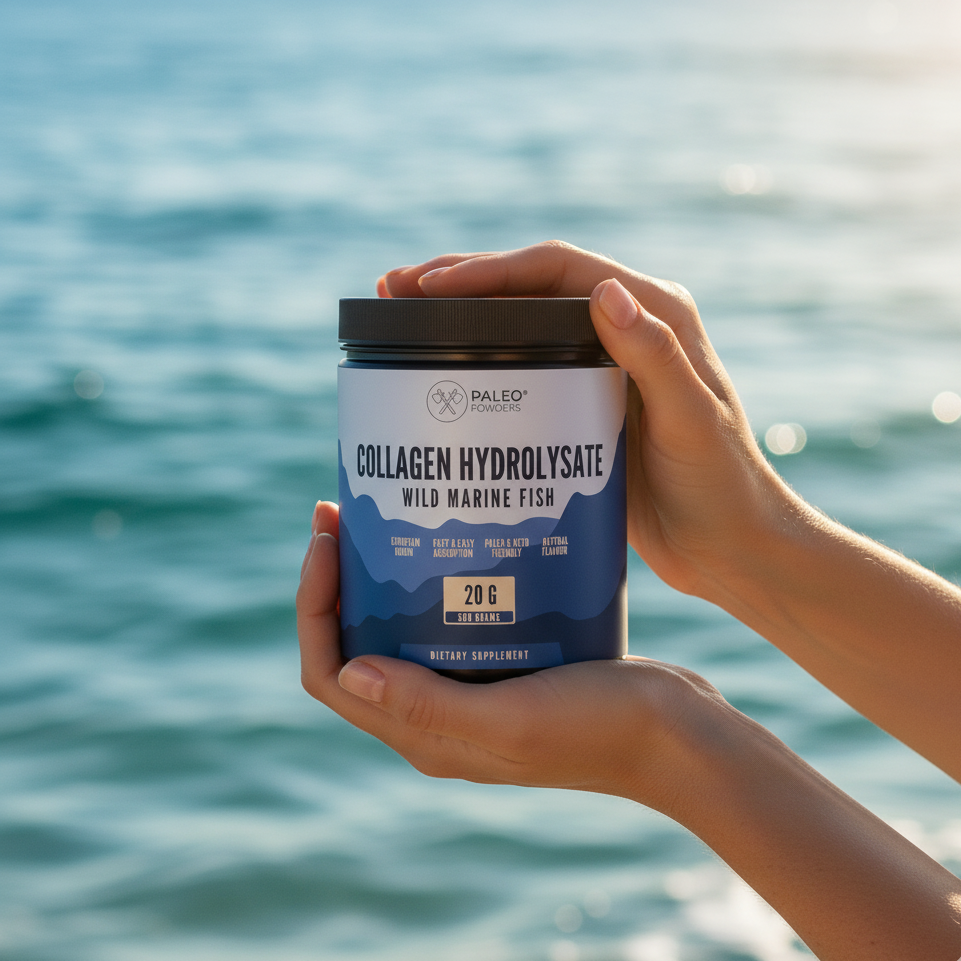 Onze collageen is afkomstig van wild gevangen vis uit Europese wateren (FAO-zone 27). Na vangst wordt het collageen op lage temperatuur enzymatisch gehydrolyseerd tot kleine peptiden met een gemiddeld moleculair gewicht van ongeveer 3 kDa. Dit vergemakkelijkt de opname door het lichaam. Het eindproduct is geur- en smaakneutraal, volledig oplosbaar in koude en warme vloeistoffen en getest op zware metalen volgens EU-veiligheidsnormen.