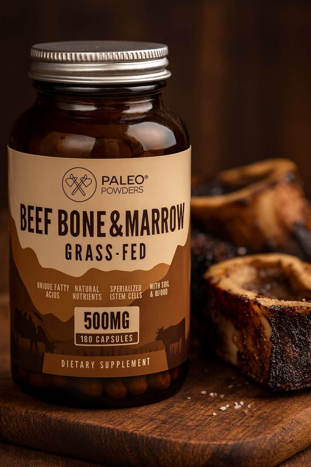 Onze beenmergcapsules zijn gebaseerd op het principe van ‘nose-to-tail’ voeding en geïnspireerd op de voeding van onze voorouders. In plaats van zelf verse beenmerg te bemachtigen, maak je eenvoudig gebruik van de kracht van gevriesdroogde bot en beenmerg in capsulevorm.