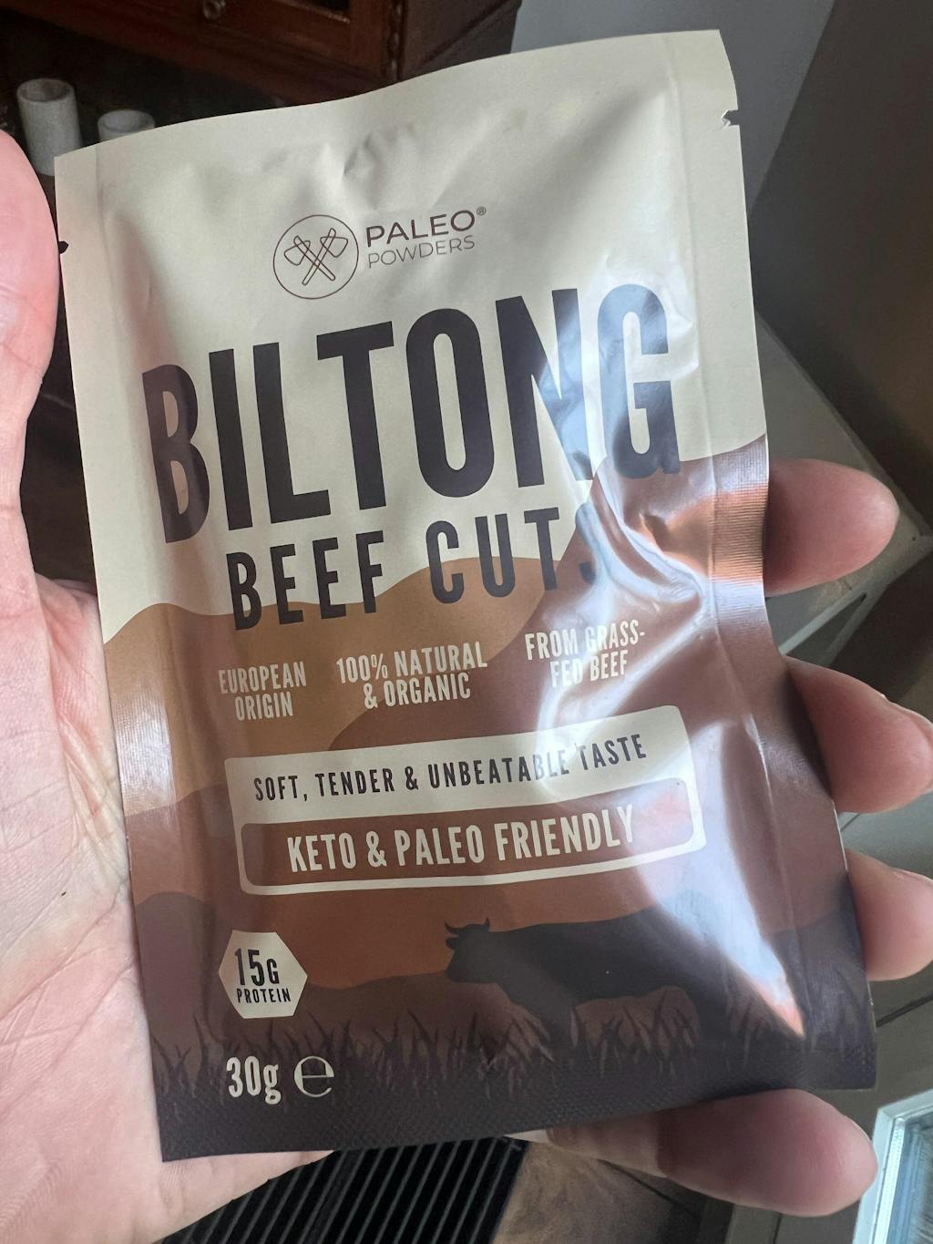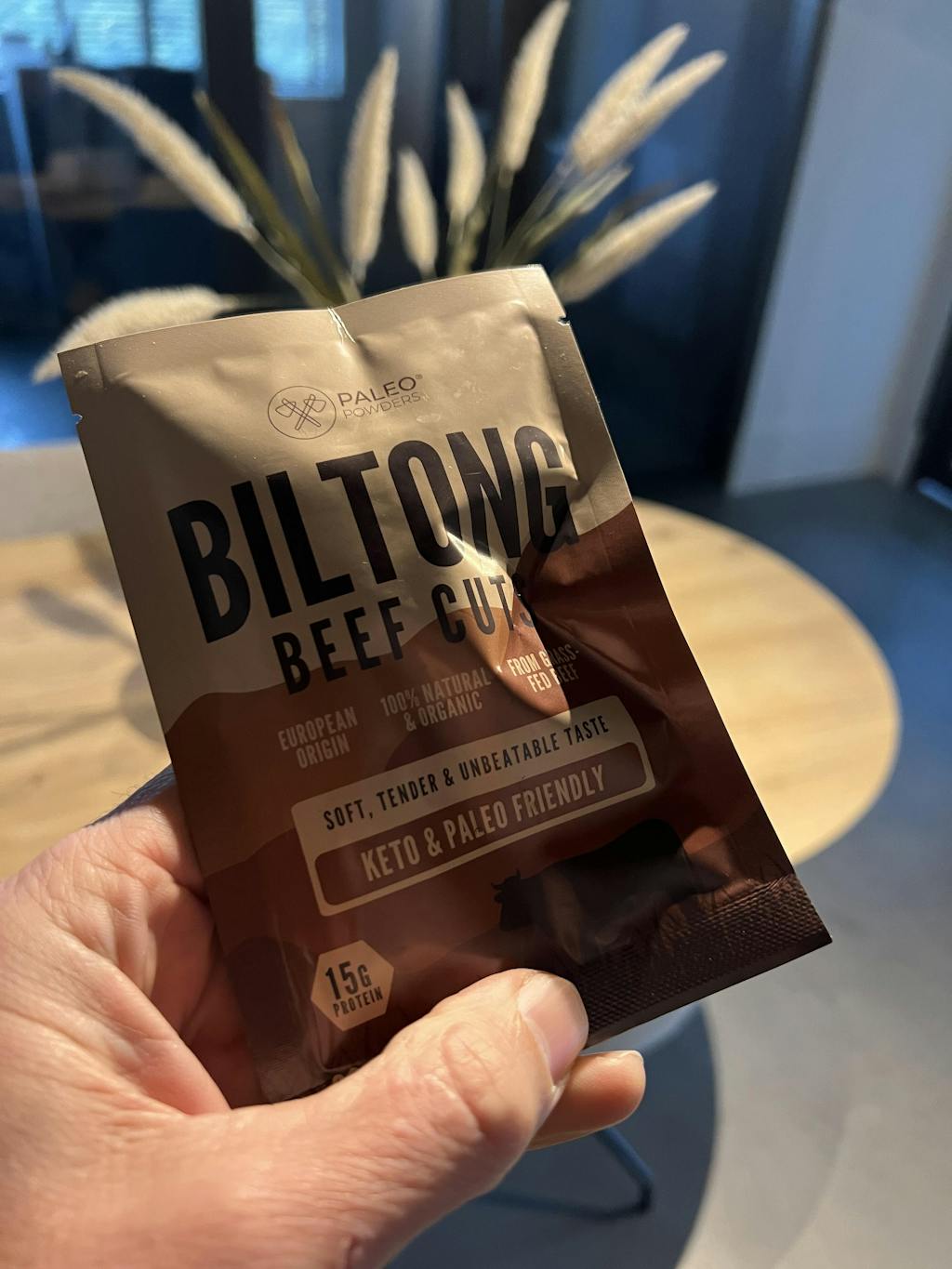 Biltong is in de basis puur grasgevoerd rundvlees, langzaam luchtgedroogd om de natuurlijke voedingswaarde en smaak te behouden. Rundvlees is van nature rijk aan hoogwaardig eiwit (alle essentiële aminozuren) en bevat daarnaast belangrijke micronutriënten zoals ijzer, zink, fosfor en selenium.
